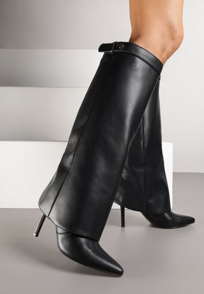 Czarne Kozaki na Obcasie Typu Szpilka z Wywiniętą Cholewką Lavemesse