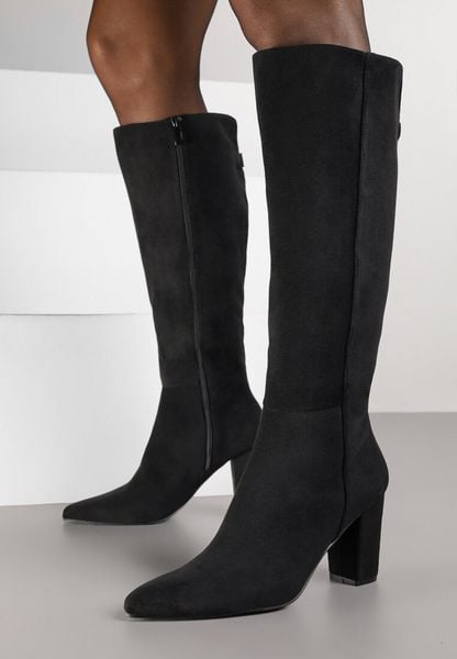 Czarne Kozaki do Kolan z Imitacji Zamszu na Słupku Nenilea