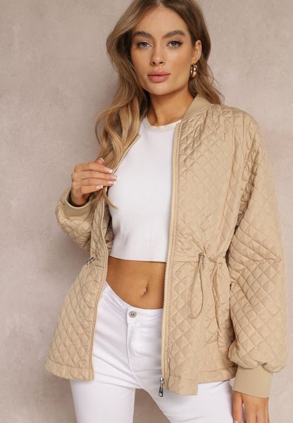 Beżowa Pikowana Kurtka Bomberka ze Ściągaczami Libbie