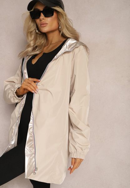 Beżowa Metaliczna Kurtka Dwustronna z Kapturem Amsera
