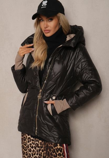 Czarna Kurtka Ozdobiona Pikowaniem z Rękawami Zakończonymi Ściągaczami i Kapturem Celosira
