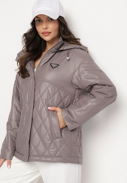 Ciemnoszara Pikowana Kurtka Ozdobiona Pikowaniem z Odpinanym Kapturem Falerosa