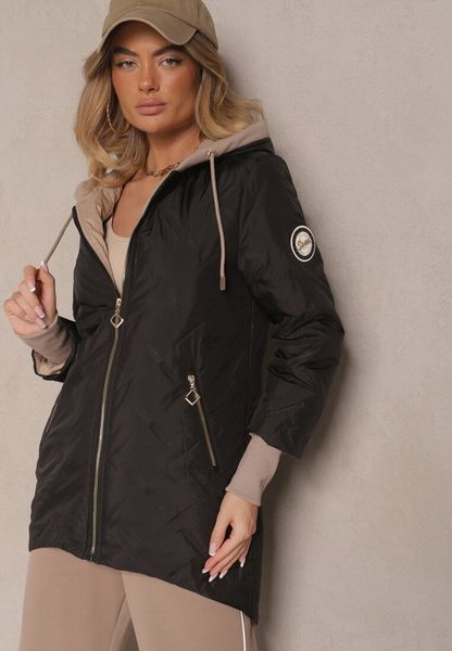 Czarna Kurtka z Odpinanym Kapturem Dłuższym Tyłem i Ściągaczami z Pikowanym Przeszyciem Zinlea