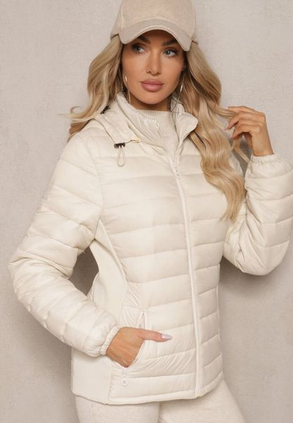Jasnobeżowa Pikowana Kurtka z Kieszeniami i Kapturem z Możliwością Odpięcia Nikigala
