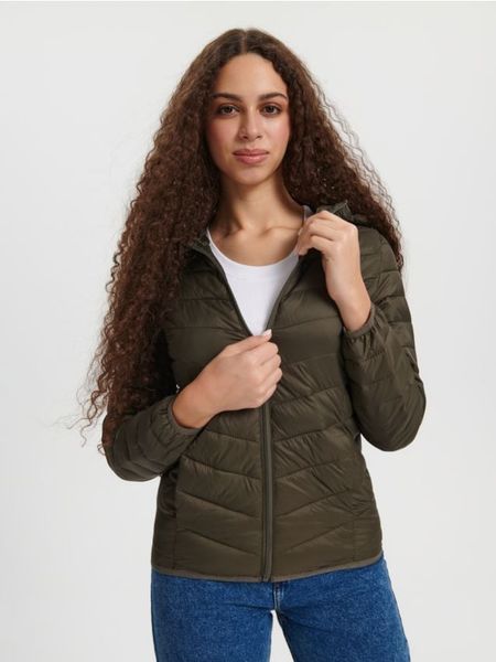 Sinsay – Pikowana kurtka z kapturem – zielony –
