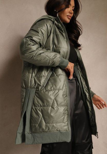 Zielona Przejściowa Kurtka z Kapturem Zdobiona Pikowaniem Fesulia