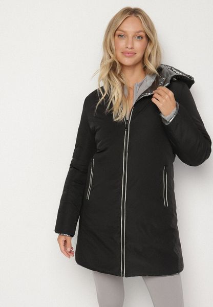 Czarna Pikowana Kurtka Dwustronna z Kapturem Alarrise