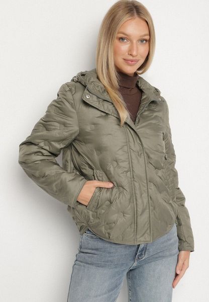 Jasnozielona Kurtka Przejściowa z Kapturem w Oryginalne Pikowane Przeszycia Arivitta