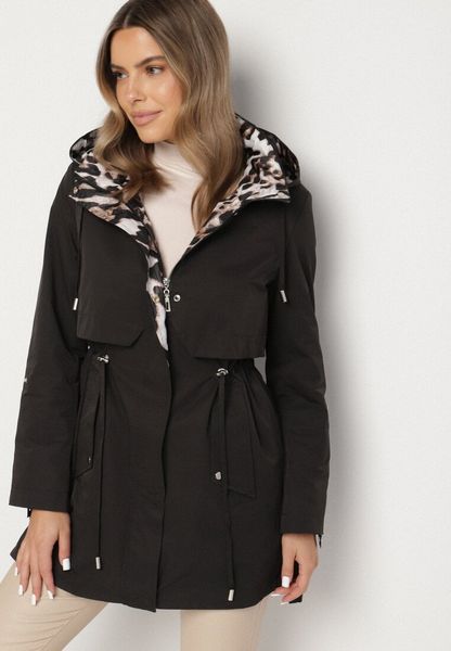 Czarna Kurtka w Stylu Parki z Odpinanym Kapturem i Ozdobną Podszewką Ismerife