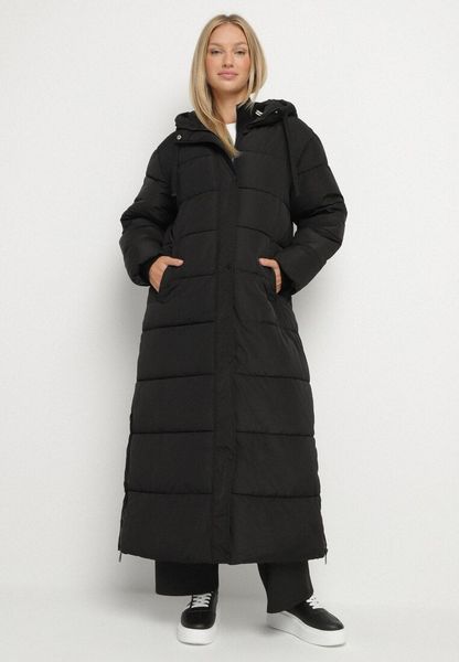 Czarna Pikowana Kurtka z Kapturem o Prostym Kroju Venella