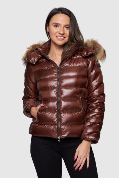 HETREGO Brązowa damska puchowa kurtka Holly z odczepianym kapturem, Rozmiar 42 EU – 46 IT