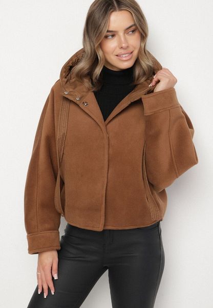 Brązowa Przejściowa Kurtka z Rękawami Typu Nietoperz i Kapturem Alinee