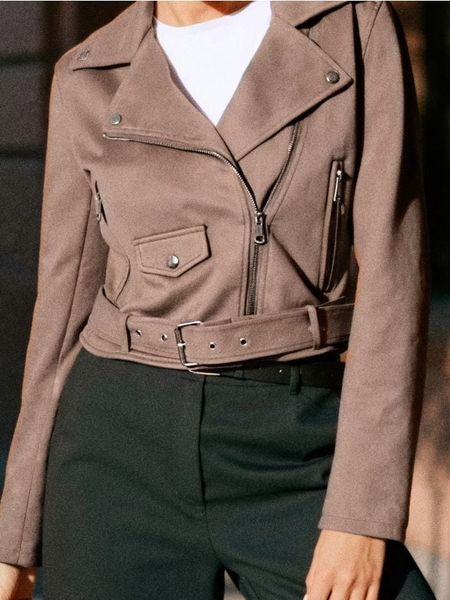 Kurtka ramoneska z imitacją zamszu – brązowy