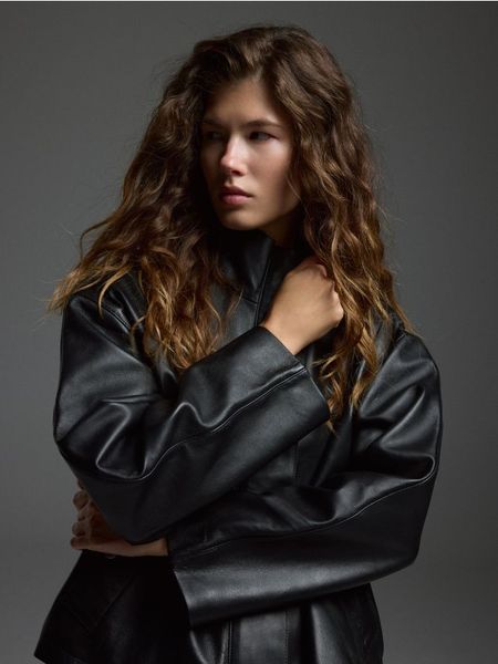 Kurtka o prostym fasonie, wykonana ze skóry naturalnej.