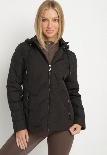 Czarna Kurtka Przejściowa z Kapturem i Ozdobnym Pikowaniem Cilvessa