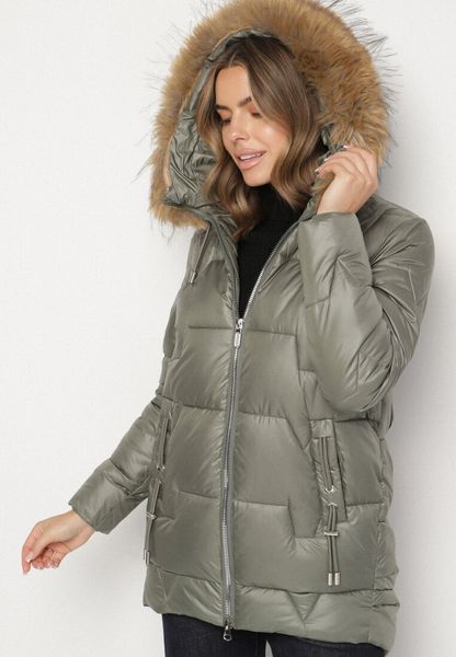 Zielona Pikowana Kurtka z Kapturem z Odpinanym Futerkiem Galiara