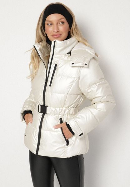 Biała Pikowana Kurtka Zimowa z Paskiem z Klamerką w Stylu Retro Alorisse