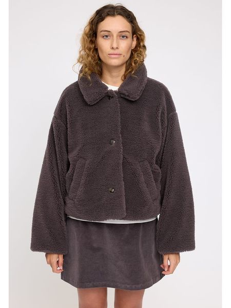 – z poliestru pochodzącego z recyklingu- kołnierz: stójka- zapięcie: listwa guzikowa- wpuszczane kieszenie: 2- krój: luźny- look: jednokolorowy
