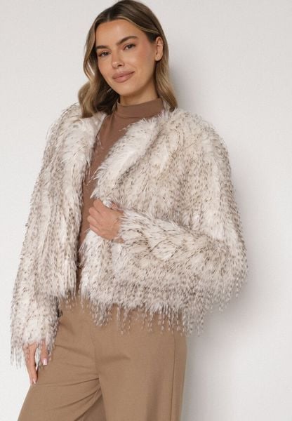 Biała Futrzana Kurtka z Cieniowanym Wzorem Tusvella