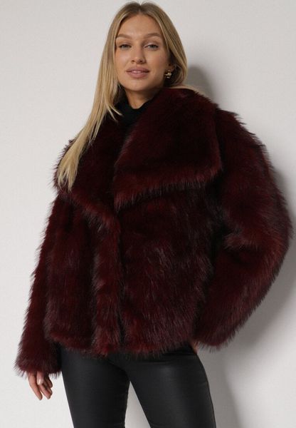 Bordowa Kurtka Futerko z Szerokim Kołnierzem Vertilira