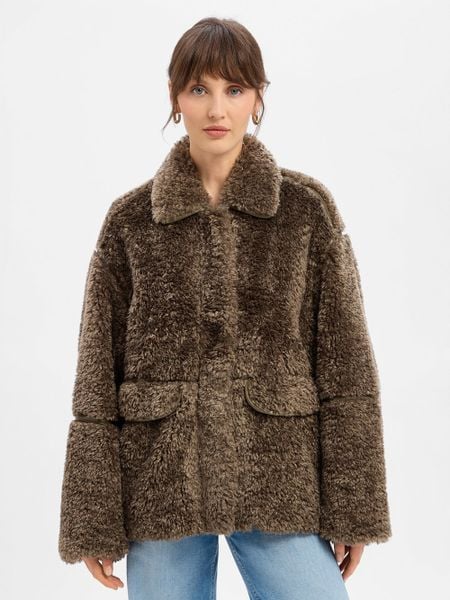 EDITED Damska kurtka ze sztucznego futra – Amia Kobiety brązowy jednolity, 34