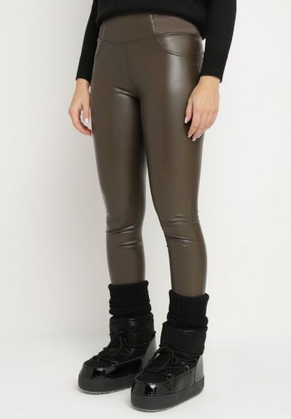 Brązowe Ocieplane Legginsy z Ekoskóry z Wysokim Stanem Feliora