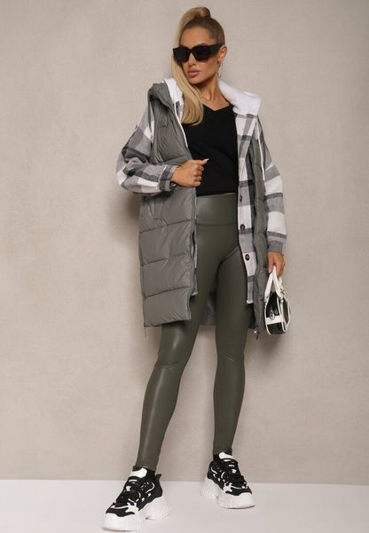 Ciemnozielone Legginsy z Imitacji Skóry High Waist z Polarem Selabra