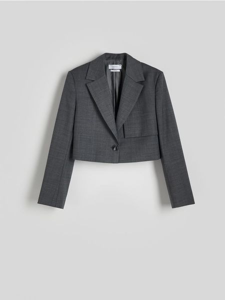 Marynarka o skróconym kroju, wykonana z gładkiej tkaniny z wełną