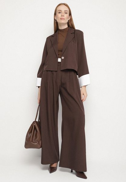 Brązowy Komplet Garniturowy Dwurzędowa Marynarka Oversize i Szerokie Spodnie Tevalda