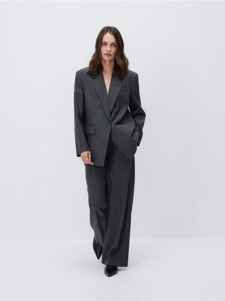 Marynarka o prostym kroju, wykonana z tkaniny z wiskozą.