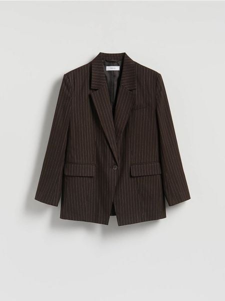Marynarka w prążek z wiskozą – ciemnobrązowy