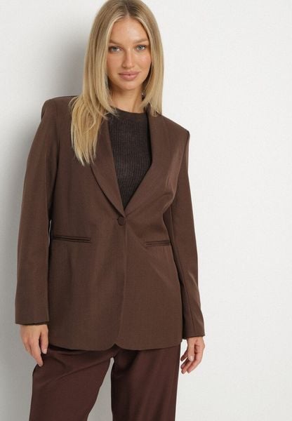 Brązowa Jednorzędowa Marynarka z Usztywnioną Linią Ramion Tiolinda