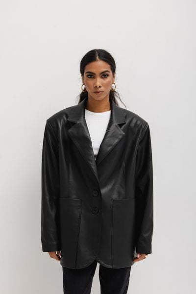 Marynarka oversize z eko skóry w kolorze CZARNYM – HARLEY LEATHER