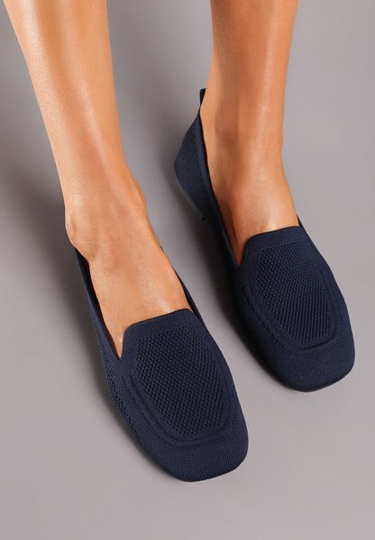 Granatowe Płaskie Wsuwane Mokasyny z Perforacją i Kwadratowym Noskiem Janestia