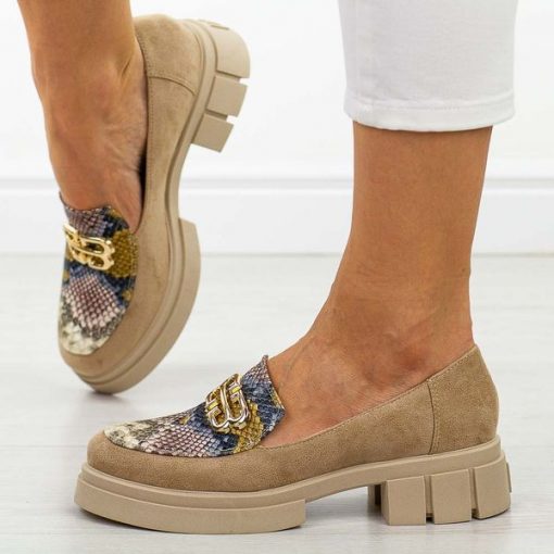 Beżowe zamszowe Polskie mokasyny damskie Deoni D001