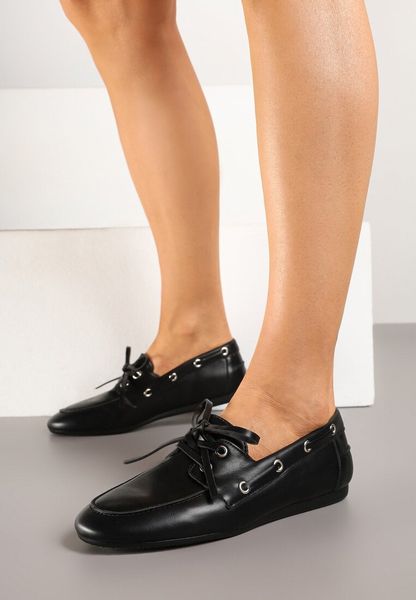 Czarne Mokasyny z Ozdobnym Wiązaniem Lanrive