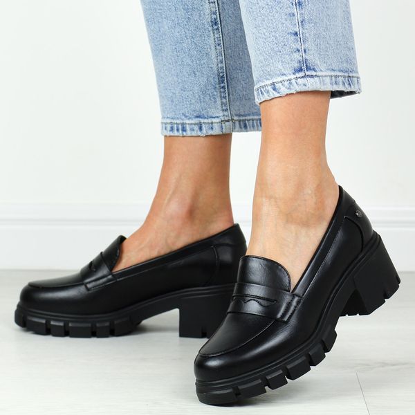 Czarne półbuty damskie na traperze, mokasyny Potocki 12401