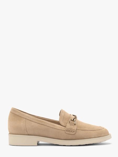 Ciemnobeżowe Półbuty Mokasyny na Koturnie z Wkładką ze Skóry Naturalnej Ozdobione Paskiem Zorvia
