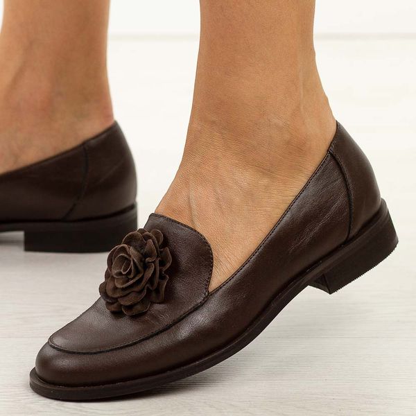 Czekoladowe skórzane Polskie mokasyny damskie Deoni D110
