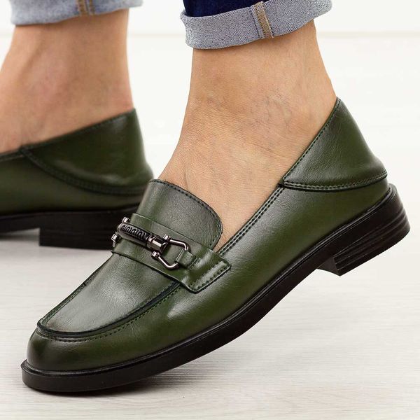 Zielone skórzane mokasyny damskie Vinceza 18112