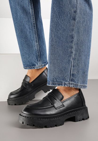 Czarne Mokasyny Vices na Grubej Podeszwie Viara