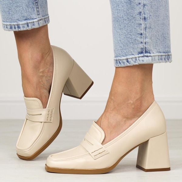 Beżowe mokasyny damskie na słupku Potocki 12324