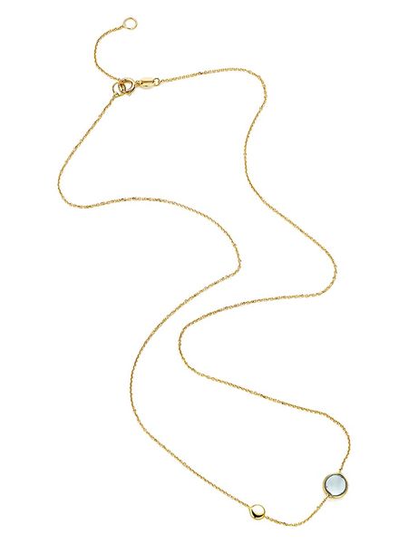 – materiał: 14-karatowe złoto próby 585- typ łańcuszka: ankier- zapięcie: federing- kamień: topaz- kolor kamienia: błękitnyUwaga: Zdjęcie produktu w powiększeniu.