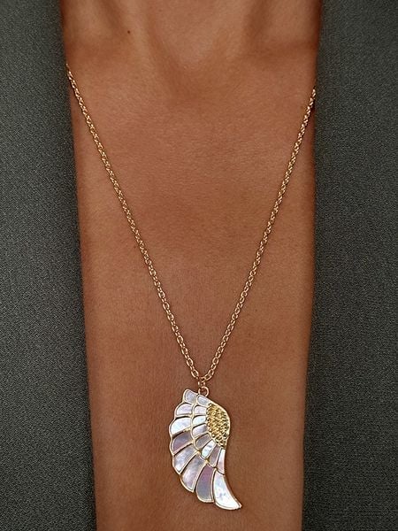 – materiał: srebro Sterling próby 925- powłoka: 18K złoto- zapięcie: karabińczyk- typ łańcuszka: ankier- rodzaj kamienia: masa perłowa- kolor kamienia: bezbarwny- element ozdobny: skrzydło- regulacja długości: takWskazówka: Zdjęcie produktu w powiększeniu.