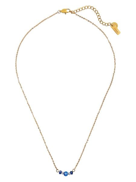 – materiał: stal szlachetna- powłoka: 14K złoto- zapięcie: karabińczyk- rodzaj kamienia: kwarc- kolor kamienia: biały, niebieski- regulacja długości: takWskazówka: Zdjęcie produktu w powiększeniu.