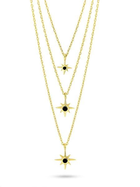 – materiał: srebro Sterling próby 925- powłoka: złoto- typ łańcuszka: ankier- zapięcie: karabińczyk- rodzaj kamienia: cyrkonia- kolor kamienia: czarny- regulacja długości: takWskazówka: Zdjęcie produktu w powiększeniu.