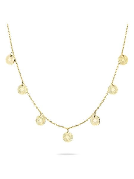 – materiał: stal szlachetna- powłoka: IP-gold- zapięcie: karabińczyk- typ łańcuszka: ankier- kształt zawieszki: okrągła- regulacja długości: takWskazówka: Zdjęcie produktu w powiększeniu.