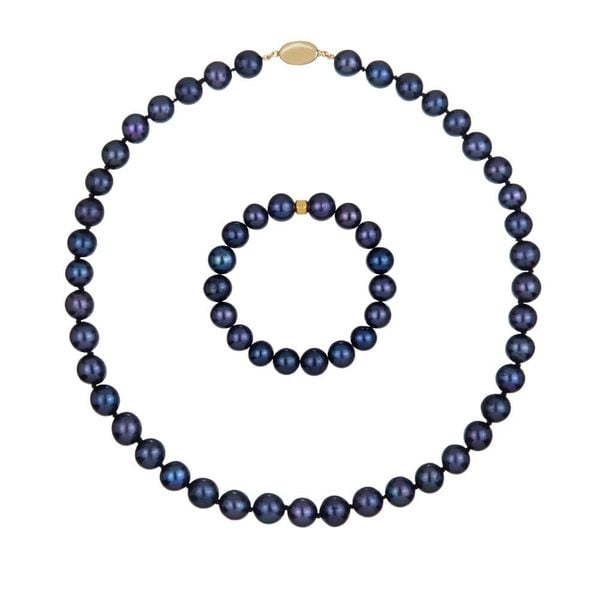 TAHA Komplet naszyjnik bransoletka czarne perły naturalne 10 mm