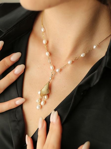 Yokoamii Naszyjnik z pozlacanego mosiadzu z Perla (synth.) Naszyjniki 1 ct Damski