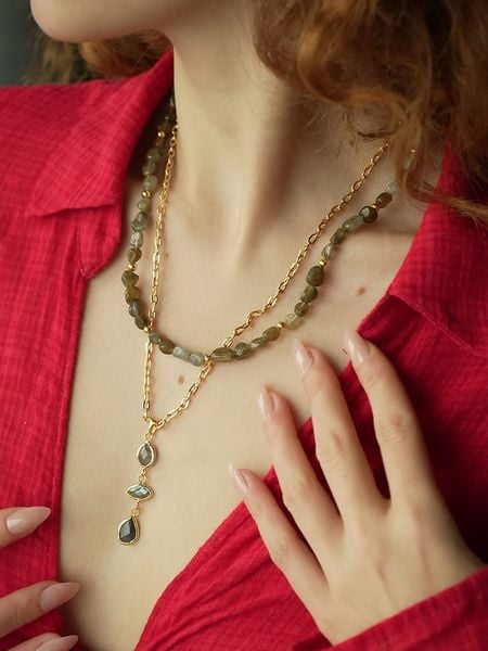 Pierres delicates Pozłacany naszyjnik z labradorytami – dł. 50 cm rozmiar: onesize
